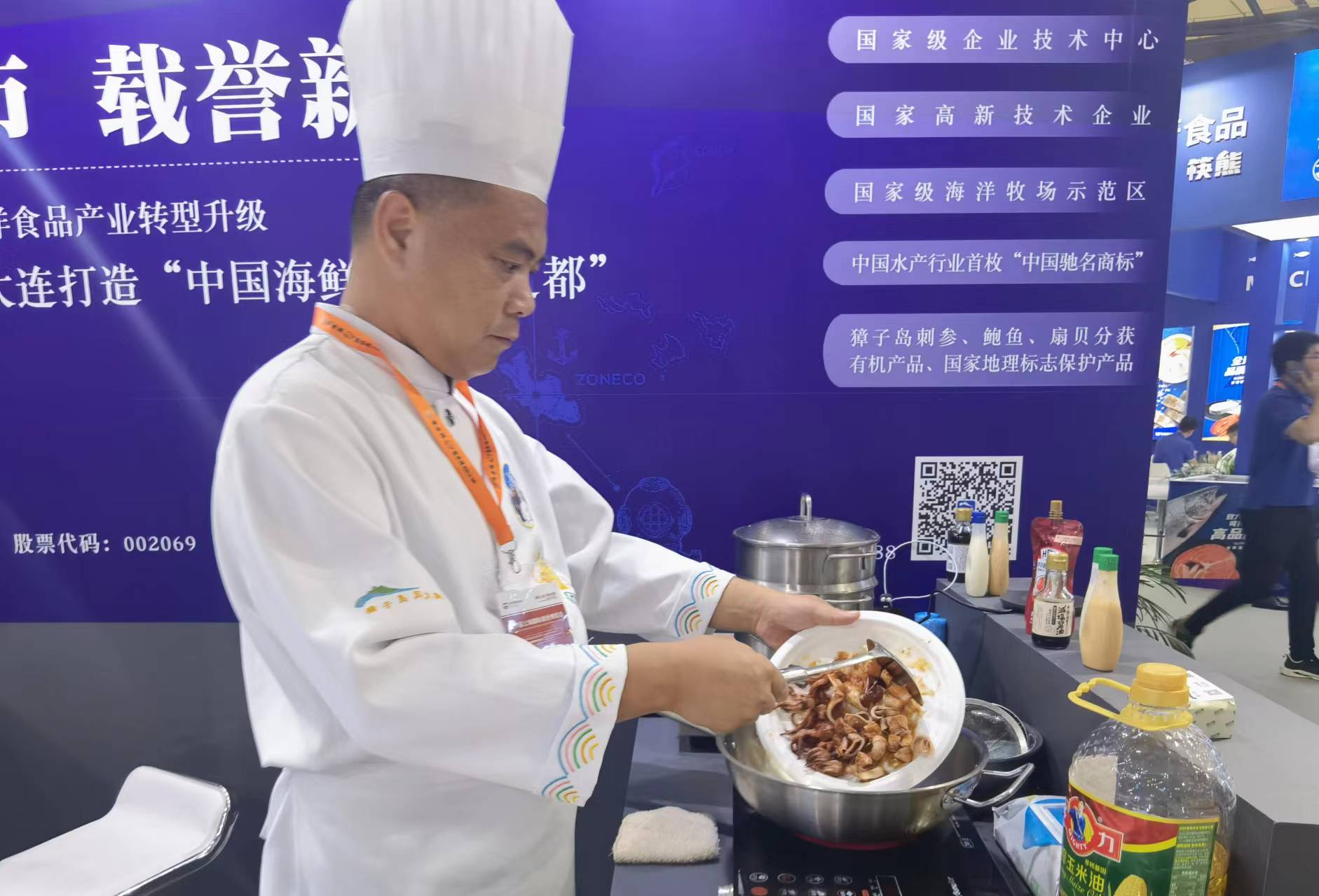 獐子島集團展位前人頭攢動,琳瑯滿目的展品包括刺參系列、冷水活鮮系列、海洋預(yù)制菜系列、魚子醬系列等產(chǎn)品集體亮相。憑借著獐子島的高端品質(zhì)、品牌影響力和豐富品類,吸引了眾多客商、同業(yè)洽談合作及交流學(xué)習(xí)。