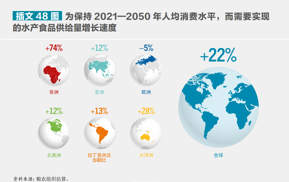 為保持 2021—2050 年人均消費(fèi)水平,而需要實(shí)現(xiàn)的水產(chǎn)食品供給量增長(zhǎng)速度。?糧農(nóng)組織