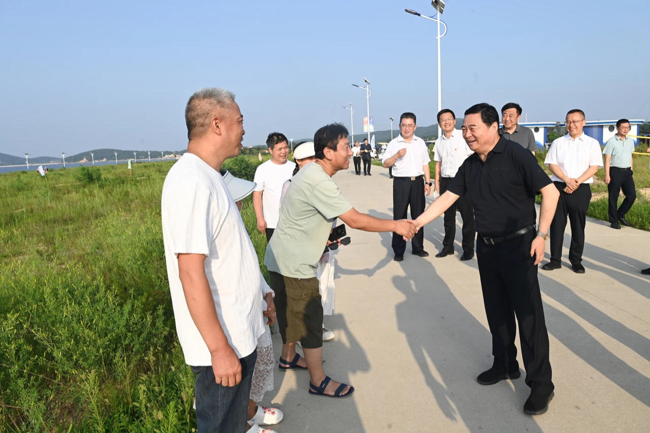 8月的大長山島飲牛灣旅游區(qū),海水湛藍、海沙潔凈,魚鷗翔集、風光旖旎。郝鵬在海邊聽取長??h發(fā)展海島文旅產(chǎn)業(yè)、海釣產(chǎn)業(yè)情況匯報,與游客親切交流。