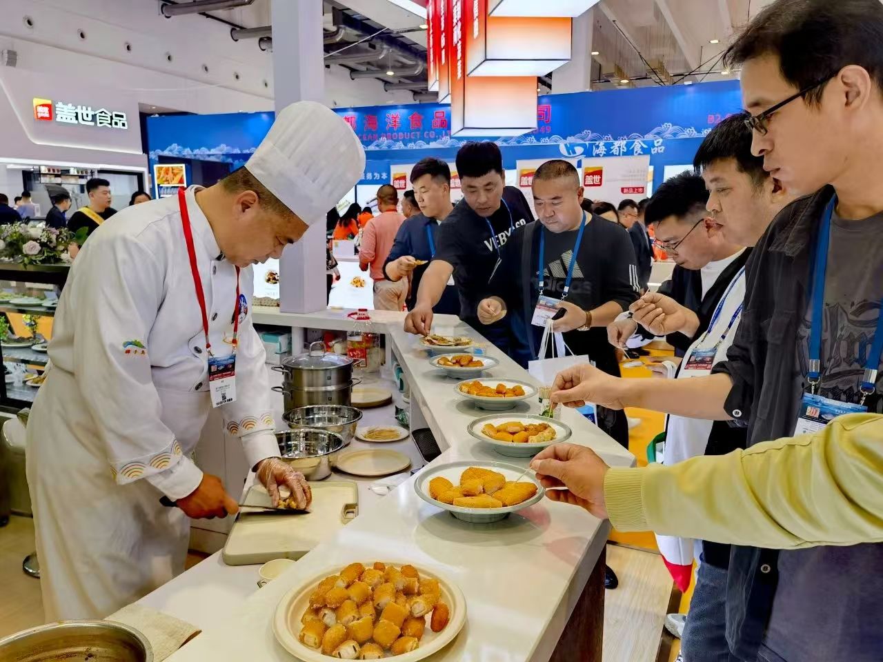 在獐子島集團(tuán)特裝展位上,展示了來(lái)自北緯39°獐子島原產(chǎn)地的刺參、鮑魚(yú)、扇貝,以及大洋深海的三文魚(yú)、鱈魚(yú)、魷魚(yú)、鮐鲅、蝦等上百款養(yǎng)生食品、休閑食品、凍鮮食材和海鮮預(yù)制食品。特別是獐子島海參品類(lèi)的全新升級(jí)尤為引人注目?!霸鷳B(tài) 源刺參”強(qiáng)化了其核心價(jià)值,并依托“原產(chǎn)地、原始基因、原生態(tài)海域、原始生長(zhǎng)方式、原本形態(tài)、原初營(yíng)養(yǎng)”的六原支撐體系,突顯了獐子島海參特有的自然稟賦和高端品質(zhì)。現(xiàn)場(chǎng)還特邀名廚演繹精湛廚藝,讓客商們體驗(yàn)到獐子島海洋美食的獨(dú)特魅力和源自海洋原生態(tài)的營(yíng)養(yǎng)美味。