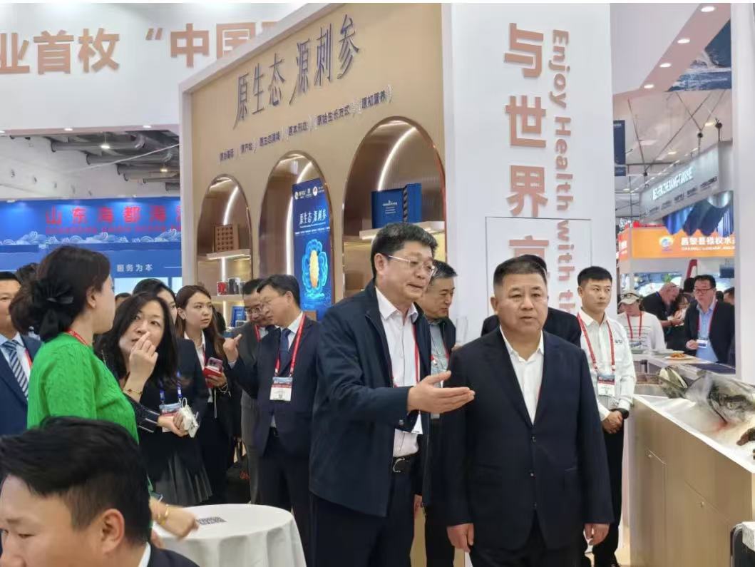 博覽會(huì)首日,大連市副市長(zhǎng)楚天運(yùn)親臨獐子島集團(tuán)展位,在獐子島集團(tuán)總裁戰(zhàn)成敏的陪同下考察指導(dǎo)。
