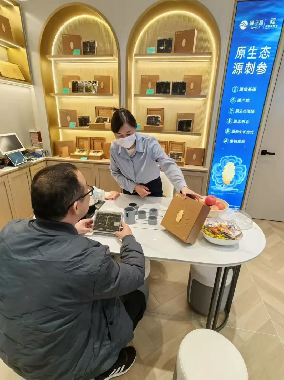 獐子島集團海參加盟中心總監(jiān)陳杰表示,獐子島源刺參終端店主色調(diào)為藍色,深度融入了豐富的海洋文化內(nèi)涵,淋漓盡致地展現(xiàn)出獐子島海納百川的廣闊品牌胸懷以及蓬勃向上、生生不息的發(fā)展活力。同時,店內(nèi)空間布局精巧合理,極大地提升了選購的便捷性與高效性。深圳印力中心店作為獐子島源刺參首家加盟店的開設(shè),拉開了獐子島源刺參在全國招商的序幕,現(xiàn)有的300多家獐子島海參銷售終端也將陸續(xù)升級為獐子島源刺參銷售終端。品牌升級后的銷售終端將配有集團統(tǒng)一下發(fā)的門店編號,具有一定的市場識別度,消費者也可以更加放心地選擇獐子島源刺參作為日常進補。