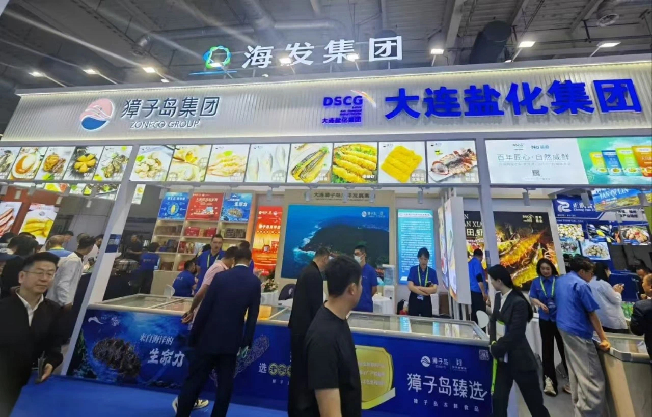 步入大連世界博覽廣場(chǎng),獐子島集團(tuán)與大連鹽化集團(tuán)作為大連獐子島海洋發(fā)展集團(tuán)的成員企業(yè),聯(lián)合打造了融合海洋文化與海洋產(chǎn)品的特裝展位,在眾多展位中脫穎而出,吸引了絡(luò)繹不絕的參觀者。獐子島集團(tuán)帶來(lái)了琳瑯滿目的源刺參、扇貝、鮑魚等海洋食品,而大連鹽化集團(tuán)的鹽田蝦與海鹽系列產(chǎn)品同樣備受關(guān)注。