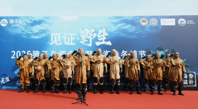 初冬時(shí)節(jié),碧海歡歌。11月7日,正值“立冬”節(jié)氣,在北緯39°黃金海域——遼寧大連長(zhǎng)山群島最南端的獐子島鎮(zhèn),“見(jiàn)證·野生——2025獐子島原產(chǎn)地野生海參冬捕節(jié)”正式啟幕,現(xiàn)場(chǎng)鑼鼓喧天,海騰人歡,洋溢著豐收的喜悅。大連獐子島海洋發(fā)展集團(tuán)總經(jīng)理張昱,長(zhǎng)海縣委常委、副縣長(zhǎng)、獐子島鎮(zhèn)黨委書(shū)記張盛族,大連市文化和旅游局副局長(zhǎng)劉磊,中綠華夏有機(jī)產(chǎn)品認(rèn)證中心主任欒治華,大連市現(xiàn)代農(nóng)業(yè)生產(chǎn)發(fā)展服務(wù)中心副主任趙宇,通標(biāo)標(biāo)準(zhǔn)技術(shù)服務(wù)有限公司大連分公司東北區(qū)農(nóng)產(chǎn)食品部經(jīng)理劉守峰,大連市海洋漁業(yè)協(xié)會(huì)會(huì)長(zhǎng)李克詩(shī),以及獐子島集團(tuán)總裁路珂等領(lǐng)導(dǎo)出席活動(dòng)。來(lái)自全國(guó)各地的嘉賓、經(jīng)銷商伙伴、主流媒體代表及網(wǎng)紅主播等300余人共同見(jiàn)證這一海洋盛事的開(kāi)啟。